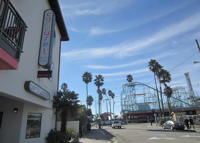 Esta posada está situado en el barrio Westside Santa Cruz, a 1 km de Seabright Beach. La Iglesia de la Misión de Santa Cruz se encuentra a 10 minutos en coche del hotel y el aeropuerto Internacional de San José a 55 km. El establecimiento está situado a poca distancia del Centro comercial Pacific Avenue. La parada de autobús 2nd Street & Leibrandt Avenue está a 200 metros del Carousel Beach Inn.