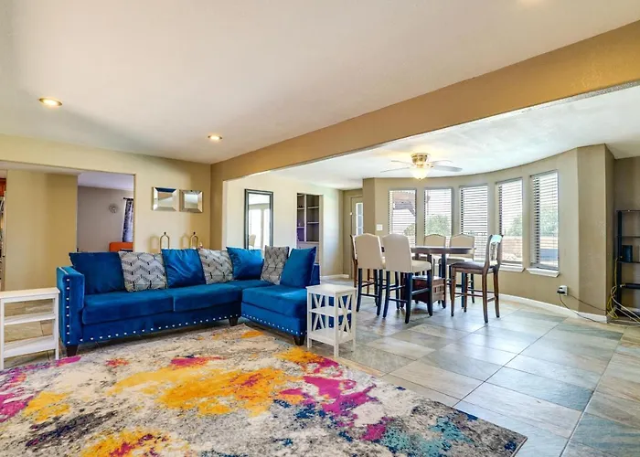 The 4-bedroom El Paso Vacation Rental With Fireplace! is located at a 2.8 km distance from Franklin High School Stadium and 30 km from El Paso International airport. This property also comes with a fully-fitted kitchen complete with a microwave, a fridge and kitchenware, so you can easily make your favourite dishes.
