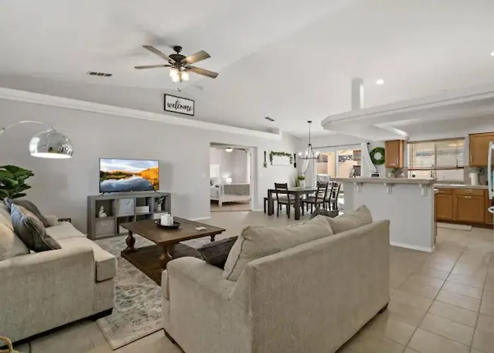 Also, the 2-bedroom villa is only a few steps from Spot and a 10-minute ride from SARA Park. Laughlin/Bullhead International airport is 120 km away from the 2-bathroom villa.